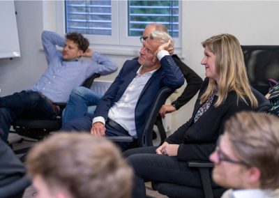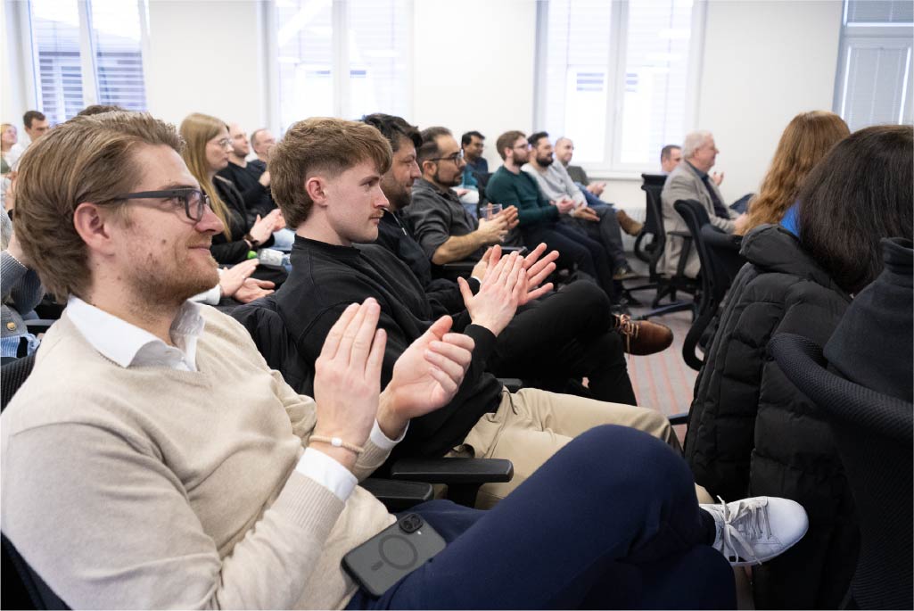 Im Anschluss an den offiziellen Teil blieb beim gemeinsamen Get-together mit Snacks und Getränken noch ausreichend Zeit für persönliche Gespräche, Fragen und einen offenen Austausch in entspannter Atmosphäre. Wir bedanken uns bei unseren Gästen von AXAITRA für den Besuch, die offenen Worte und den spannenden Einblick und freuen uns auf die weitere Zusammenarbeit innerhalb der Gruppe.