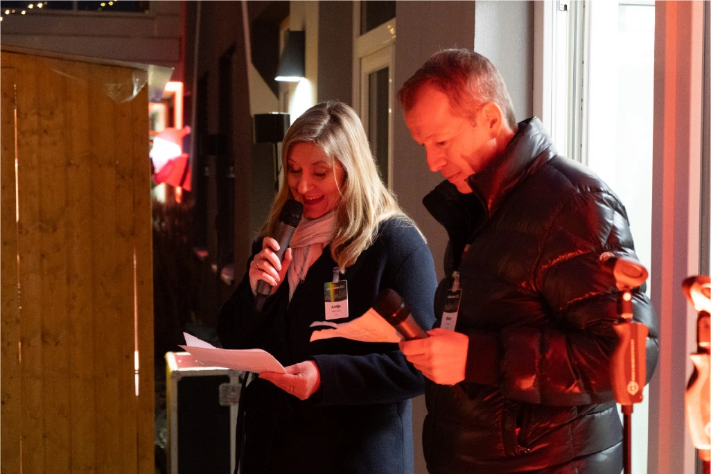 The theme of this year's Christmas party was "LM Christmas Magic". All colleagues and their families were invited to attend. The inner courtyard of our office building was transformed into a small Christmas market, providing an atmospheric setting for the end of the year. The Christmas magic was opened by Antje Henneke and Marc Liepe, who looked back on the past year in a short speech and gave a short introduction. Central developments emphasised. Afterwards, Christmas carols were sung together.